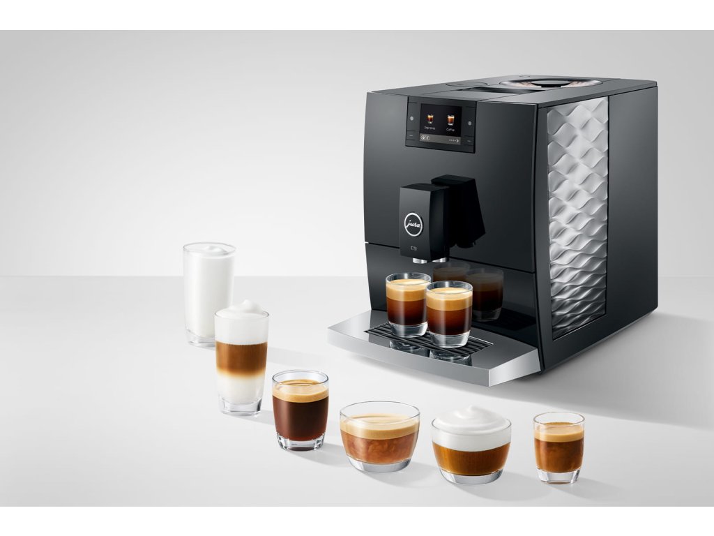 Navzdory svým kompaktním rozměrům zvládá Jura C9 přípravu 17 kávových specialit. V nabídce nechybí osvědčené klasiky ani oblíbené trendové nápoje, jako je flat white, cortado nebo espresso macchiato. Kávovar je ideální volbou pro každého, kdo hledá prémiovou kvalitu JURA v elegantním a prostorově úsporném provedení.