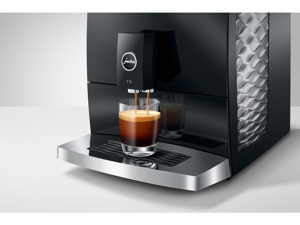 Design modelu Jura C9 vychází z vyšších prémiových řad značky JURA. Charakteristický konvexně-konkávní čelní panel působí elegantně a vytváří ideální prostor pro prezentaci připraveného nápoje. Nádrž na vodu i pochromovaná mřížka odkapávací misky zdobí vlnitý design, který podtrhuje precizní zpracování.