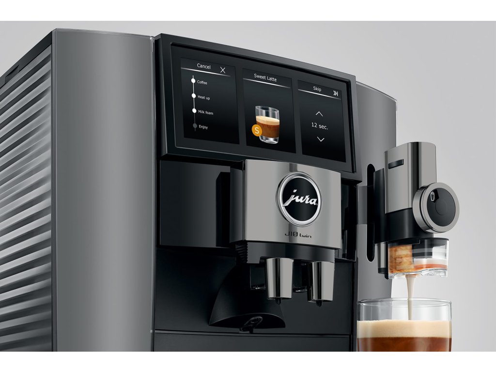 JURA J10 twin je vlajkovou lodí nové generace prémiových kávovarů JURA a představuje to nejlepší, co dnes může automatický kávovar nabídnout. Je určen pro nejnáročnější milovníky kávy, kteří nechtějí dělat kompromisy – pro domácnosti, kde se střídají různé chutě, pro kanceláře s vyššími nároky i pro skutečné kávové nadšence.