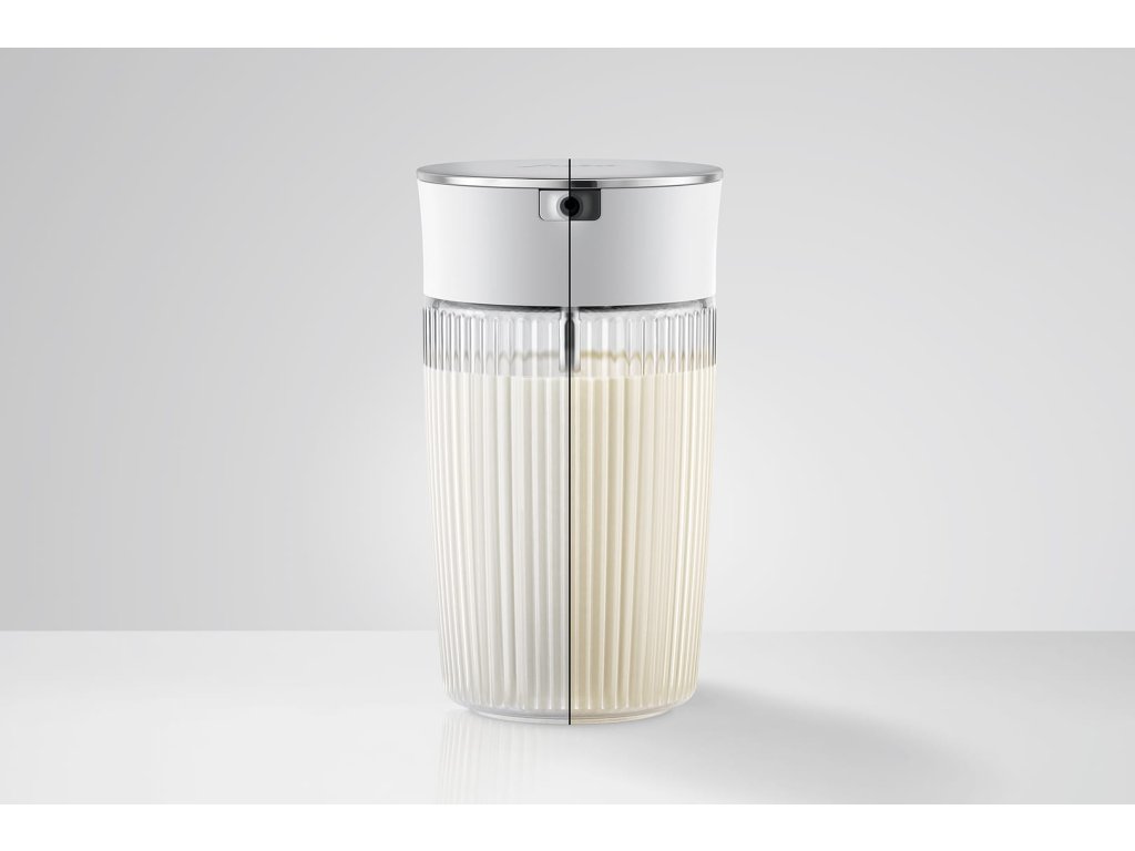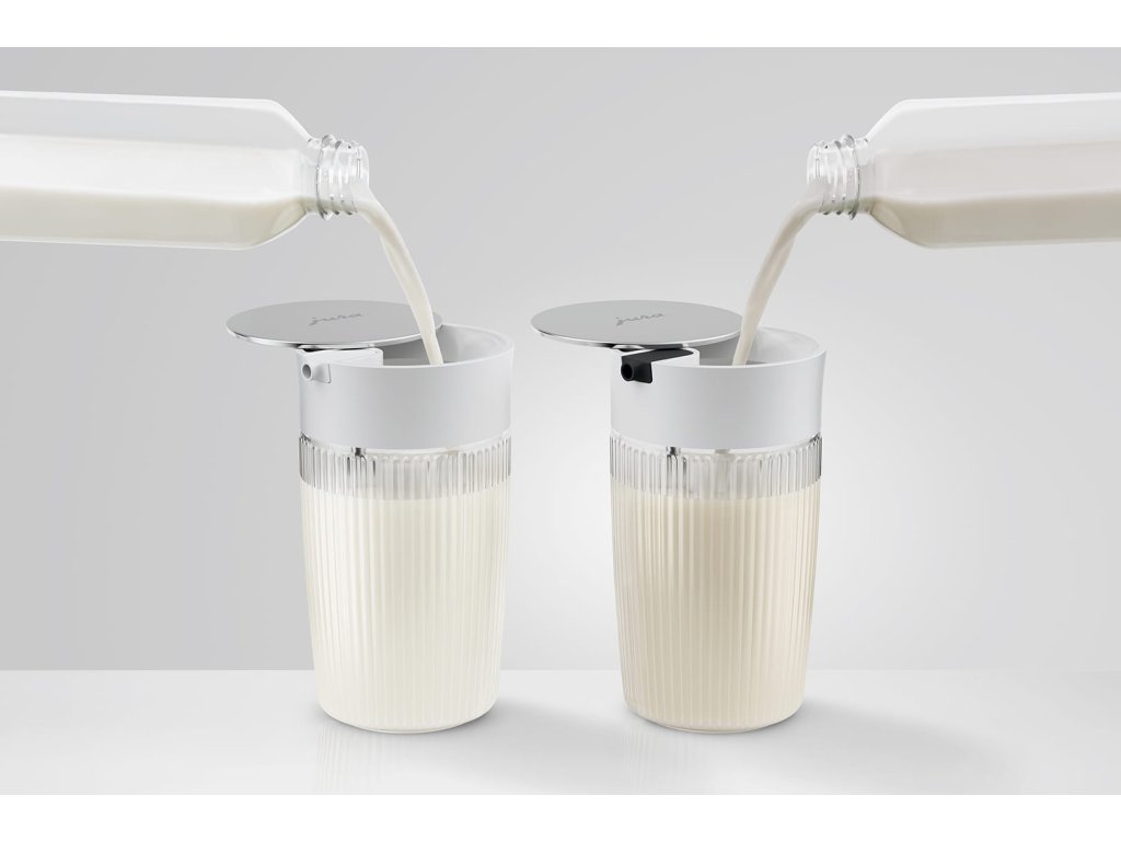 Karafa na mléko JURA je vhodná pro všechny typy mléčných nápojů – od macchiata až po flat white, cappuccina, latte macchiata až po alternativní mléčné speciality. Snadno se připojí ke kompatibilním kávovarům značky JURA a umožňuje přípravu perfektně napěněného mléka.