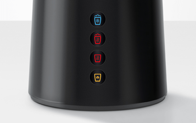 Čtyři přehledné symboly na horní straně umožňují připravit požadovaný nápoj jediným stisknutím tlačítka. Optimální teplota i způsob přípravy jsou již přednastaveny, takže se nemusíte o nic starat.
